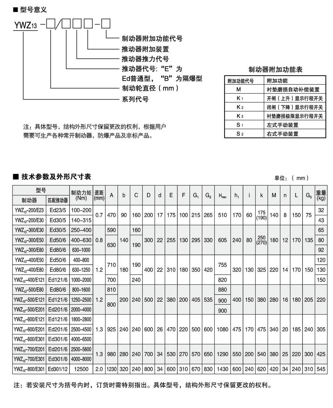- - YW,YWZ13系列电力液压鼓式制动器